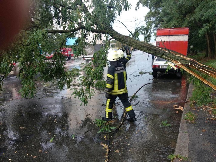 Вже о 15:05 до Служби порятунку 101 надійшла інформація про те, що на вул. Чудновського, 8 на автомобіль марки Chevrolet впало дерево. Для ліквідації наслідків негоди було направлено чергове відділення 16-ї Державної пожежно-рятувальної частини.
