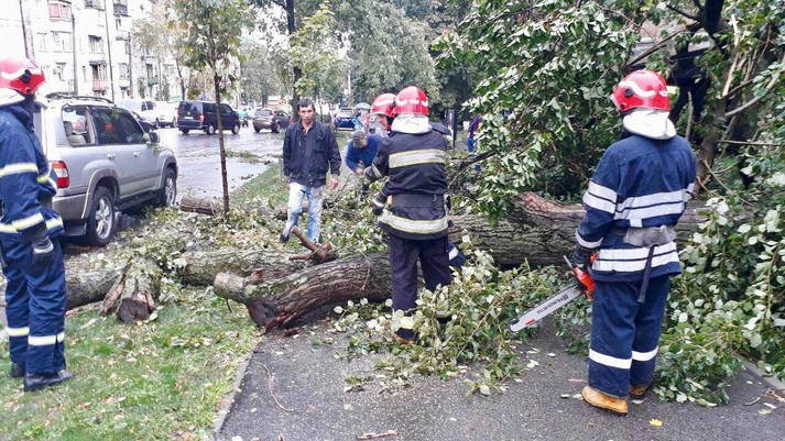 О 15:11 надійшов черговий дзвінок щодо наслідків негоди. За даною інформацією, на вул. Кіквідзе, 12, на автомобіль марки Toyota впало дерево. На місце події були направлені рятувальників Загону технічної служби.