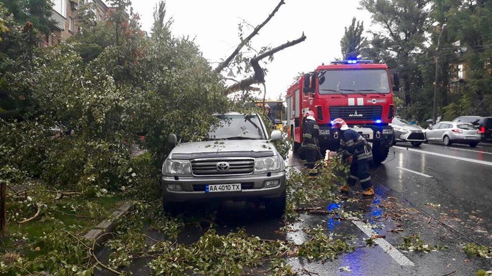 Ураган у Києві: рятувальники прибрали десять повалених дерев (фото, відео)