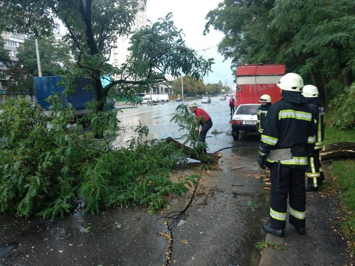 О 14:57 до оперативно-координаційного центру Головного управління ДСНС України у Києві надійшло повідомлення про те, що на проїжджу частину дороги на перехресті провулку. Приладний та вул. Робітнича впало дерево. На місце події прибули рятувальники 9-ї Державної пожежно-рятувальної частини.