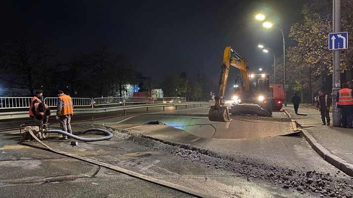 Утворилося 10-метрова вирва: на одному із проспектів Києва провалився асфальт