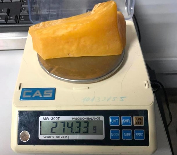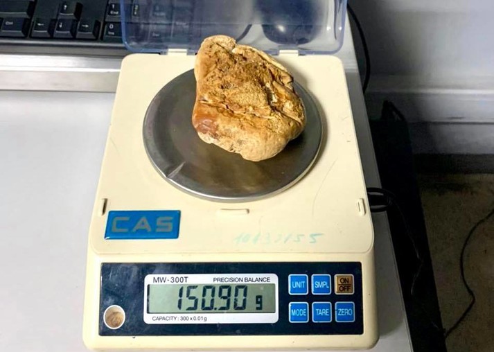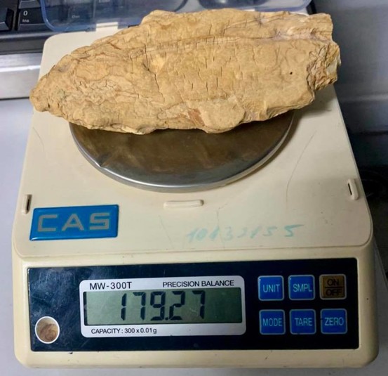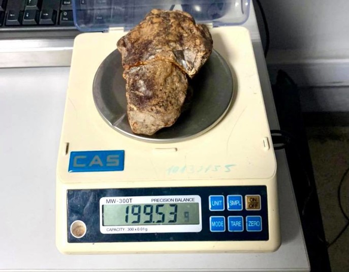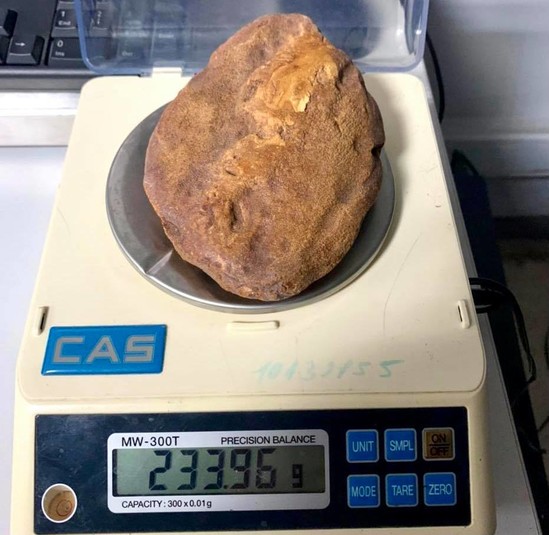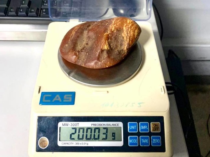 Необроблений бурштин рідкісно великих фракцій – брили по 200 та 300 грамів кожен, виявлені співробітниками Київської митниці у пасажира, який відлітав через аеропорт «Бориспіль» до Дубаї.