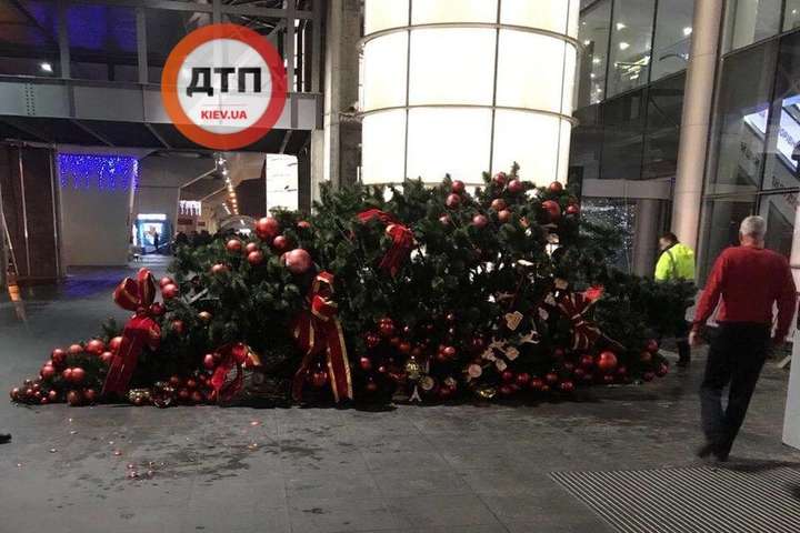 У столичному аеропорту «Бориспіль» у неділю впала на підлогу величезна новорічна ялинка, прикрашена іграшками та стрічками.