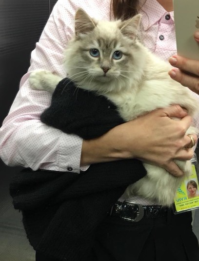 Галина Богданенко забрала домашню тваринку до себе в кабінет і почала пошуки нового господаря. Знайшовся він буквально через кілька годин після розміщення повідомлення.