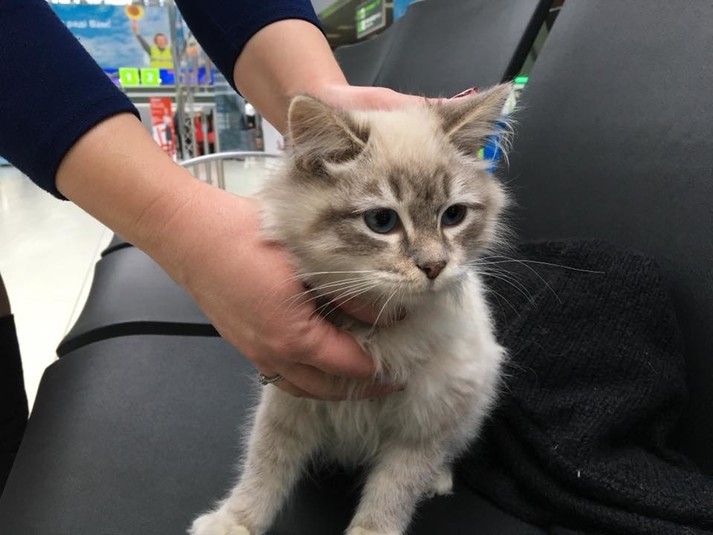 «Прийшла на роботу, а у чергового інженера аеропорту в коробці сидить кішка з блакитними очима. Пасажирка рейсу Київ-Мінськ кинула її в аеропорту. Ось просто прийшла на рейс з кішкою в руках, дуже здивувалася, що її не пропускають на рейс з твариною. недовго думаючи, жінка випустила кошеня в терміналі і спокійно пішла на паспортний контроль. Немає слів», - написала вона.