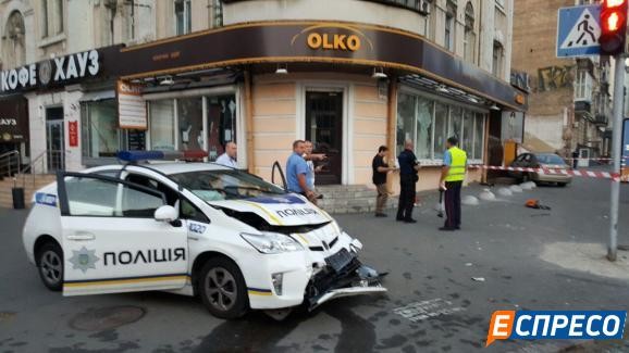 Зі слів свідків, водій таксі рухався по вул. Саксаганського на зелене світло, водночас по вул. Льва Толстого рухався поліцейський патруль із ввімкненими маячками, але без звукового сигналу. Він нібито вдарив авто таксі в бік, після чого їх обох викинуло на тротуар.