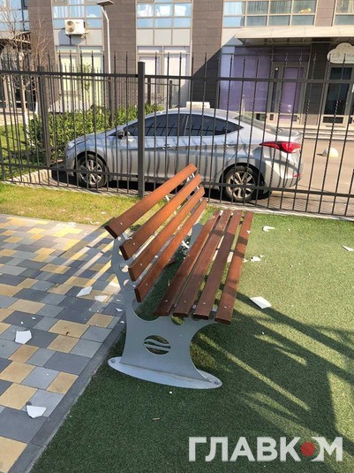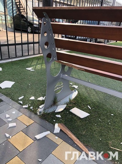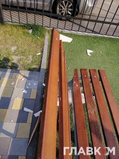 Як повідомили «Главкому» мешканці одного з будинків ЖК, плитка впала і розвалила лавочку, де гуляють діти.