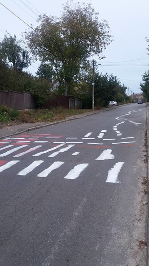 Невідомі намалювали на асфальті «зебру» і нерівну пунктирну лінію