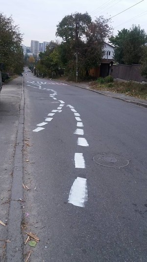 На вулиці Добрий шлях у Голосіївському районі Києва з'явилася дуже дивна дорожня розмітка.