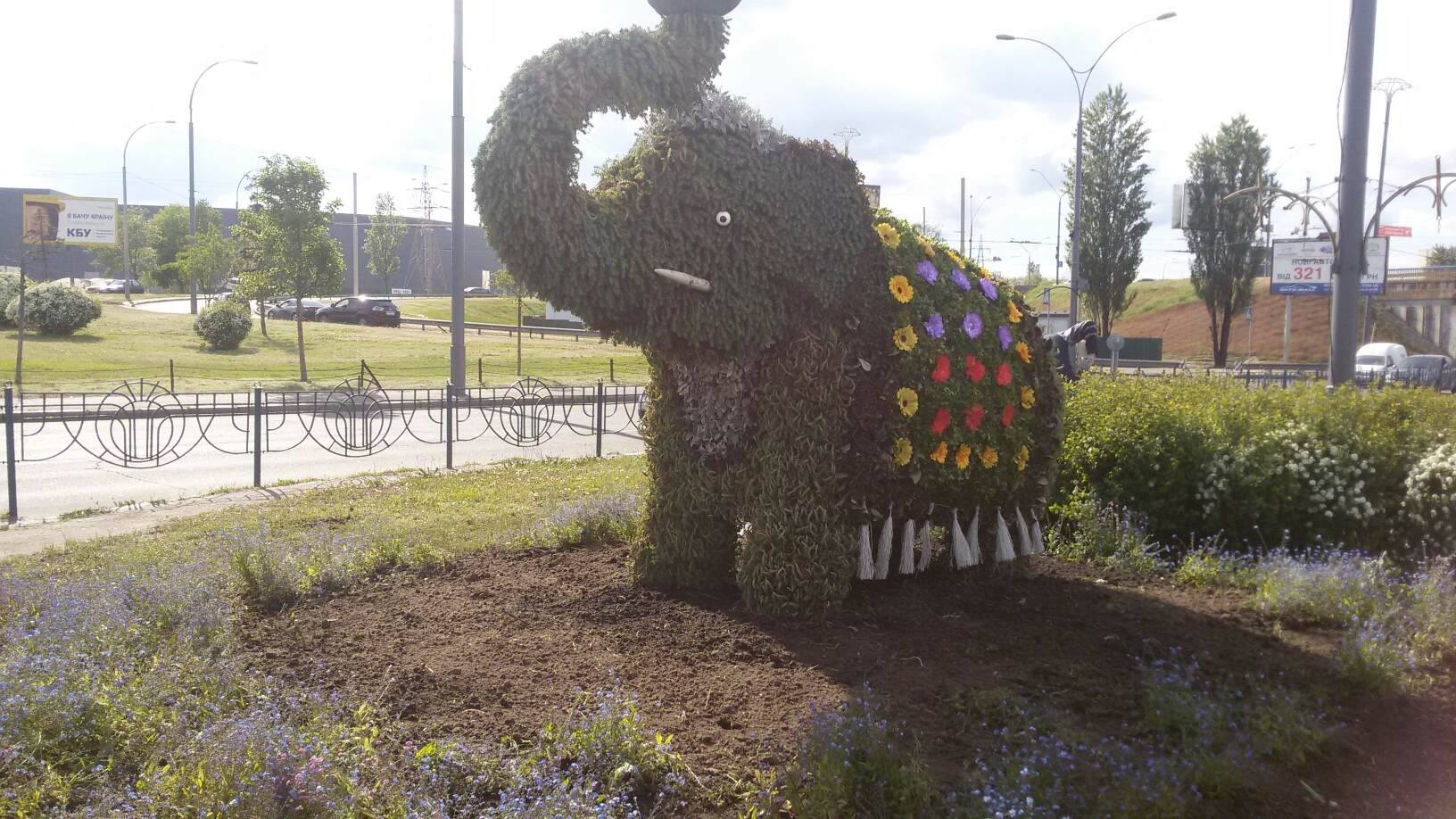 У Києві арт-композицію «Слоник» оформили квітами. Про це повідомляється на сторінці КО «Київзеленбуд» в соцмережі Facebook.