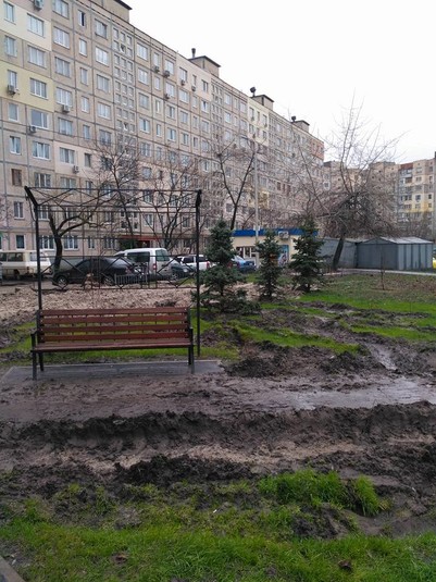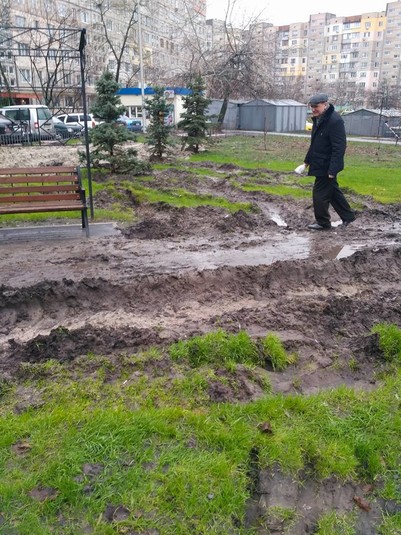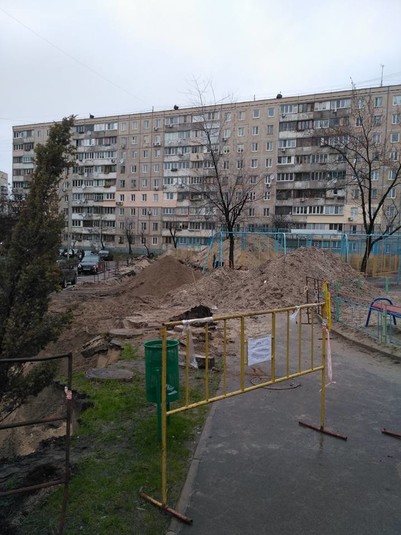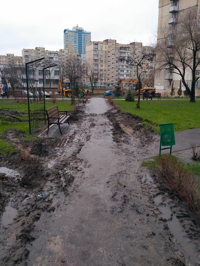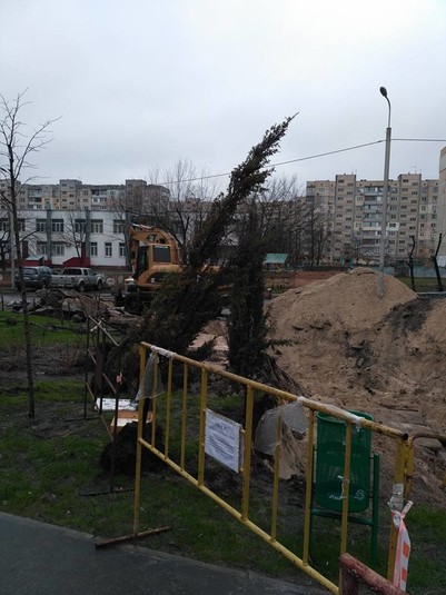 «Здається складно уявити, що це не поле бою, а звичайний київський сквер. Точніше не звичайний, а створений за бюджетні кошти та урочисто відкритий міською владою декілька років тому. Вже більше місяця тут тривають роботи по ремонту підземних комунікацій, натомість страждають від цього місцеві мешканці, а коли бачиш, що відбулося з новесенькими зруйнованими зеленими насадженнями та дитячим футбольним майданчиком взагалі немає слів», - написав Олексій.