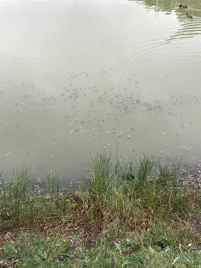 «Щойно отримали інформацію про масову загибель риби у ставках на Теремках-II. Саме на цих ставках зовсім нещодавно відбулось масове отруєння качок - в результаті якого сотні птахів загинули! Зараз же спостерігаємо тисячі мертвих рибин!» - написав він.