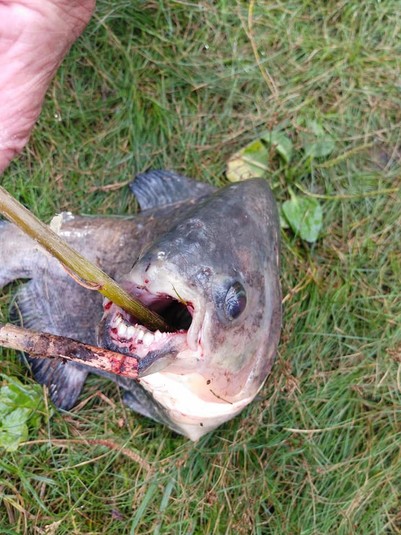 Чоловік прийшов на озеро з метою зловити товстолобика, але замість цього на гачок попався бурий (чорний) паку, який має квадратні зуби, неймовірно схожі на людські. Про це рибалка повідомив на своїй сторінці у фейсбуці.