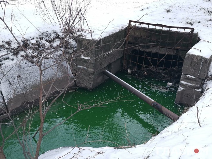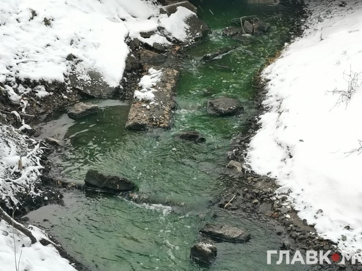 На фото видно, що вода у річці стала насиченого зеленого кольору. Наразі офіційних пояснень забарвлення води у Серці поки немає.