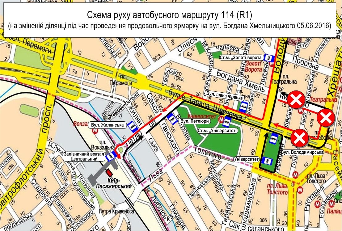 5 червня 2016 року на вул. Богдана Хмельницького на ділянці від вул. Хрещатик до вул. Пушкінської рух автобусів маршруту № 114 організовується так: