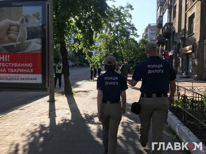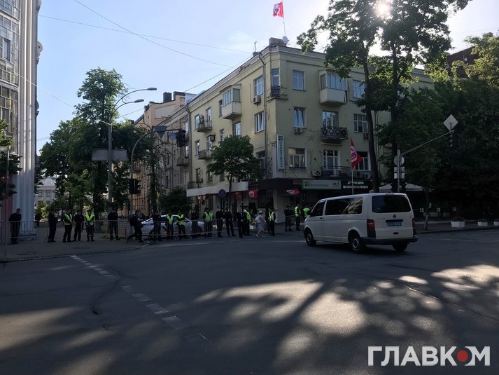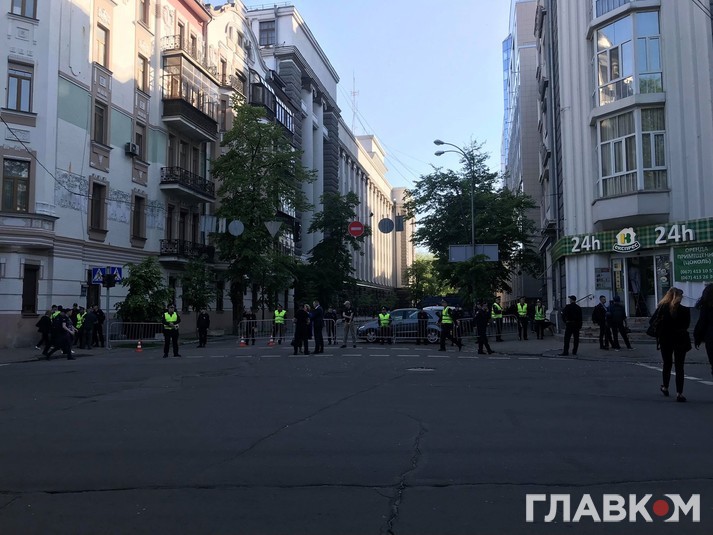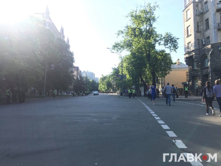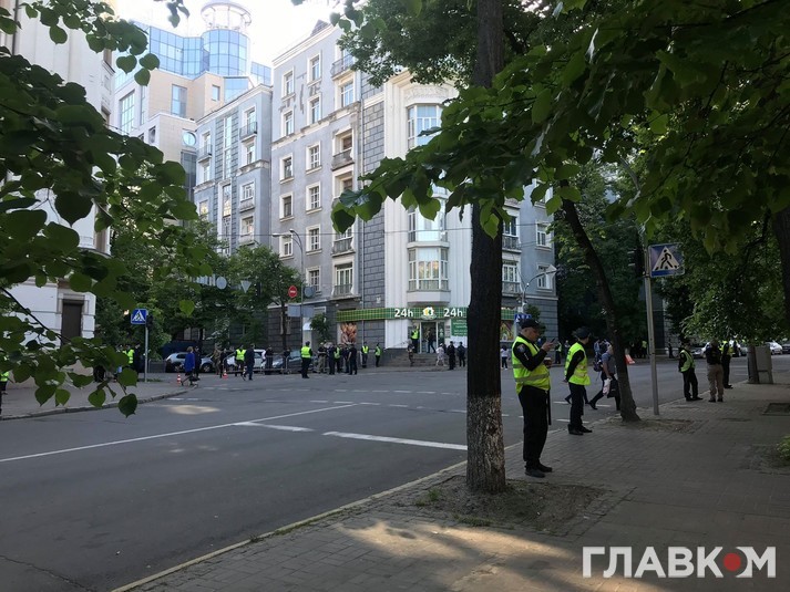 Як повідомляє кореспондент «Главкома», вздовж перекритих вулиць, зокрема, Інститутської, стоять правоохоронці.