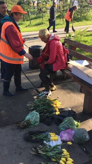 У п’ятницю, 10 травня, у парку вздовж вул. А. Малишка у Дніпровському районі Києва охороною було затримано чергову крадійку, котра знищувала тюльпани та люпин. Про це повідомляє комунальне підприємство з утримання зелених насаджень Дніпровського району.