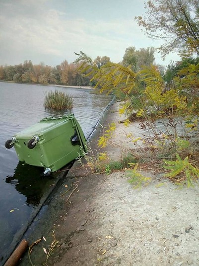 «Вночі невідомими було перетягнуто контейнери для збору сміття та повалено до річки. Два повних і один напівпорожній контейнери працівники КП УЗН Дніпровського району знайшли перекинутими у Дніпрі», - розповіли комунальники.