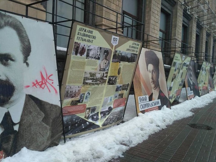 Вандали сплюндрували виставку «Українська революція 1917-1921» у Києві. Про це повідомив директор Українського інституту національної пам'яті Володимир В'ятрович.