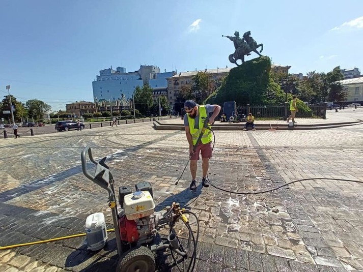 Протягом трьох днів комунальники, клінінгові компанії та активісти відмивали бруківку на Софійській площі. Відпрацювали близько 3 тис. кв. м покриття. Про це повідомив заступник голови Київської міської держадміністрації Олександр Густєлєв на своїй сторінці у Facebook.