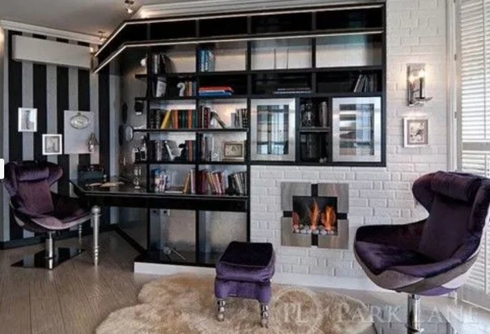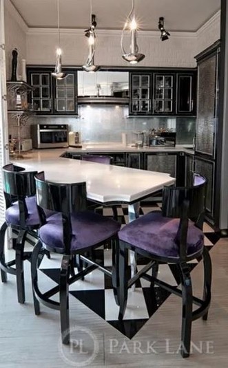 У квартирі багато чорних, срібних та фіолетових кольорів. Зокрема впадає в око чорна кухня.