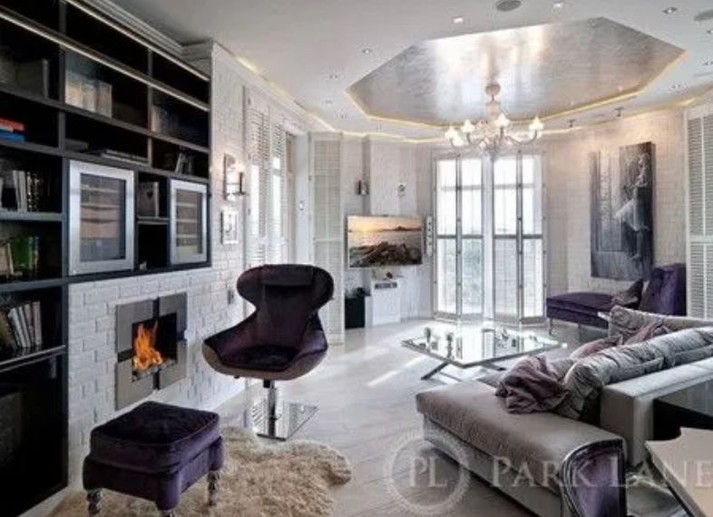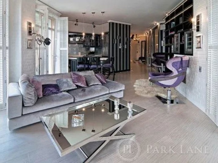 «Квартира з авторським дизайнерським ремонтом в стилі артдеко/лофт, в ремонті використовувалися високоякісні матеріали виробництва Італії, Франції, Великобританії, всі меблі за індивідуальним замовленням у світових виробників, дві спальні, два санвузли, дві гардеробні кімнати, фінська сауна, камін, винна шафа з підтримкою температури», – йдеться у повідомленні. А ще родзинкою помешкання є великі панорамні вікна – від підлоги до стелі.