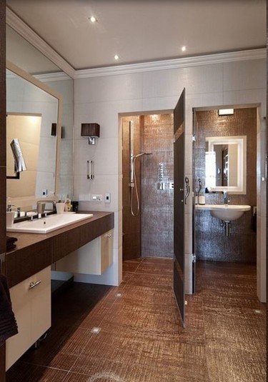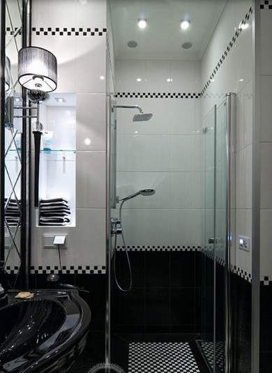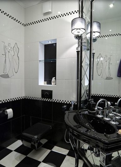 Не менш оригінальний вигляд має чорна кухня та камін у квартирі. Утім найбільше привертає увагу незвичайне розташування ванни. Вона не у спеціальній кімнаті, як звикла більшість людей, а на подіумі у спальні. Ще й обрамлена дзеркальною плиткою.