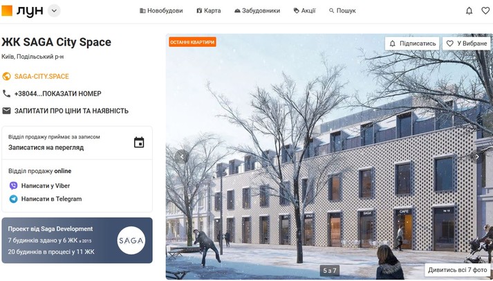Об’єкт на вул. Сагайдачного, 18 позиціонується як житловий комплекс Saga City Space