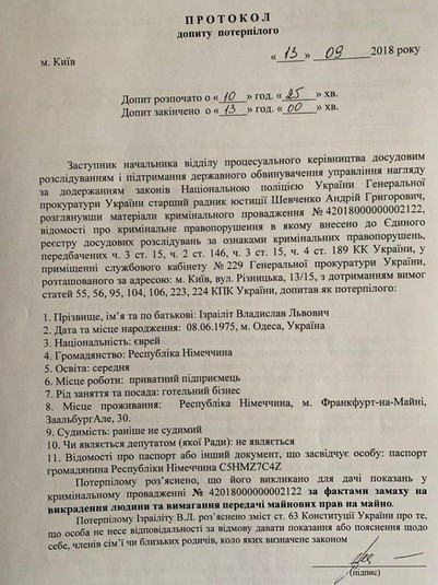 Журналіст пише, що на підставі інформації австрійської поліції Генеральна прокуратура України 29 серпня 2018 року зареєструвала кримінальне провадження №42018000000002122, яке повністю розслідувалось самими прокурорами (хоча формально й рахувалось за Головним слідчим управлінням Національної поліції).