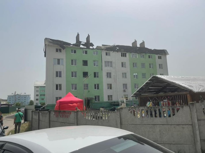 Пожежа розповсюдилась на четвертий і п’ятий поверхи, а також покрівлю. Руйнувань несучих конструкцій немає.