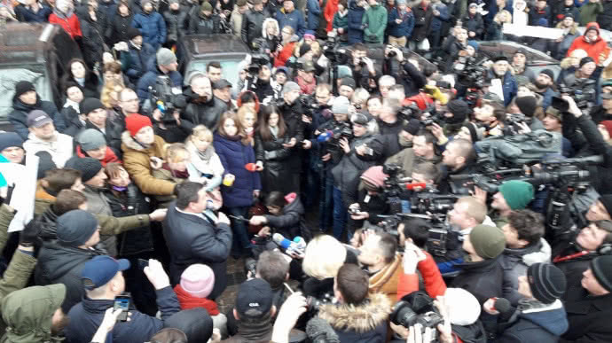 Ценов продовжив спілкуватися з активістами під стінами управління поліції Київщини.