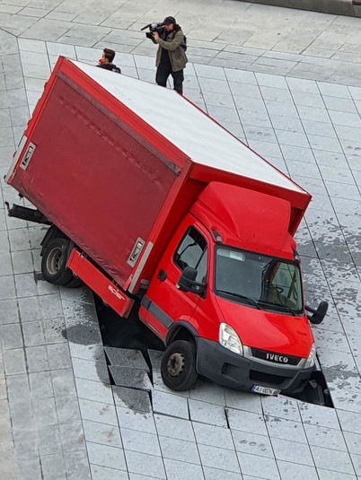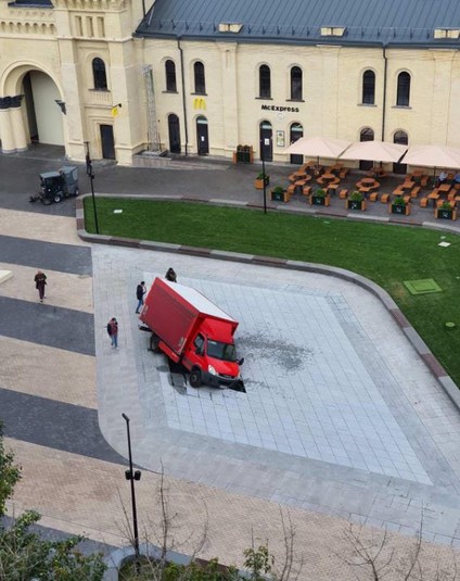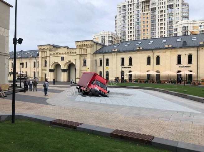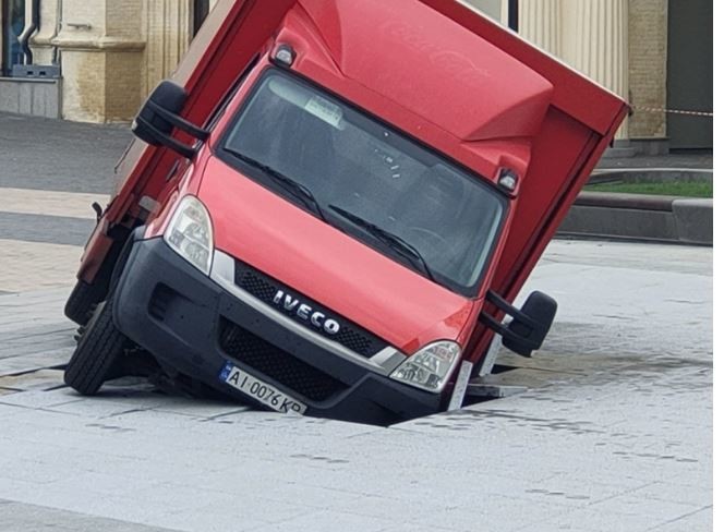 На відремонтованій Арсенальній площі провалилась вантажівка