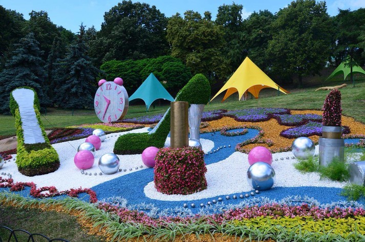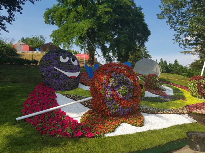 Нагадаємо, 15 червня на Співочому полі розпочалася щорічна літня виставка квітів «Світ велетнів». 240 тисяч різноманітних квітів на площі більше 2 тисяч квадратних метрів створили унікальний та різнобарвний світ гігантських квіткових інсталяцій різноманітних предметів людини-велетня.