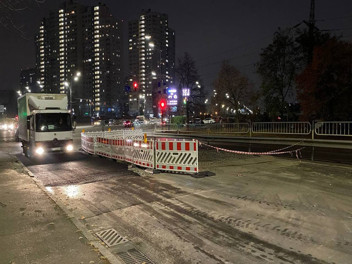 Нагадаємо, 29 жовтня, через аварію на інженерних мережах «Київводоканалу» відбулось промивання основи дороги з провалом асфальтового покриття.