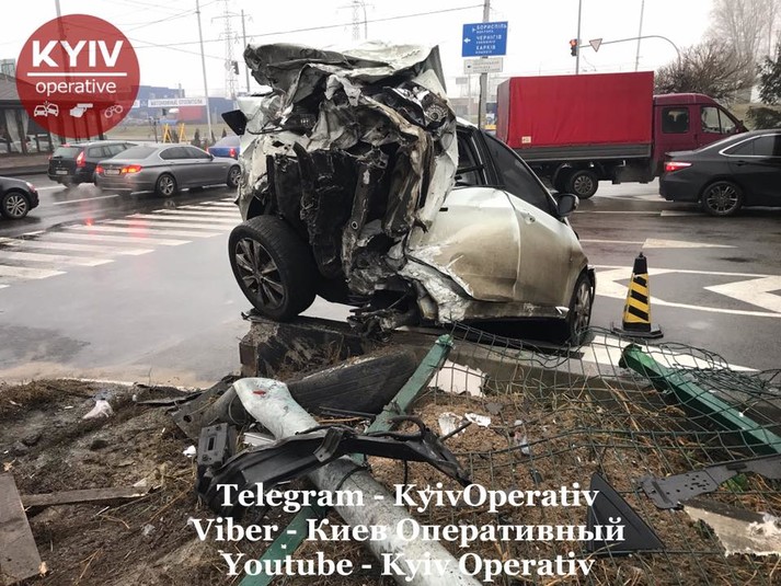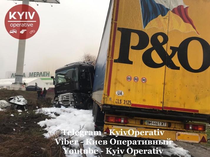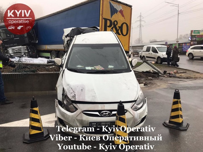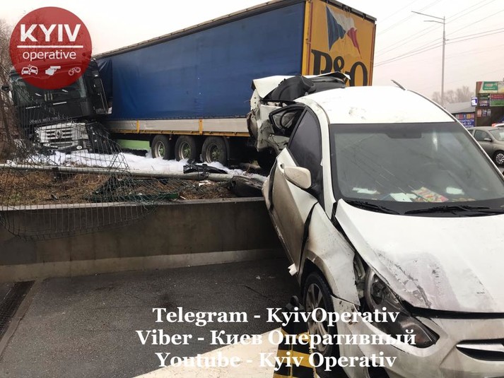 Велика автотроща у Києві: водій фури заснув за кермом і зніс два легковики (фото, відео)
