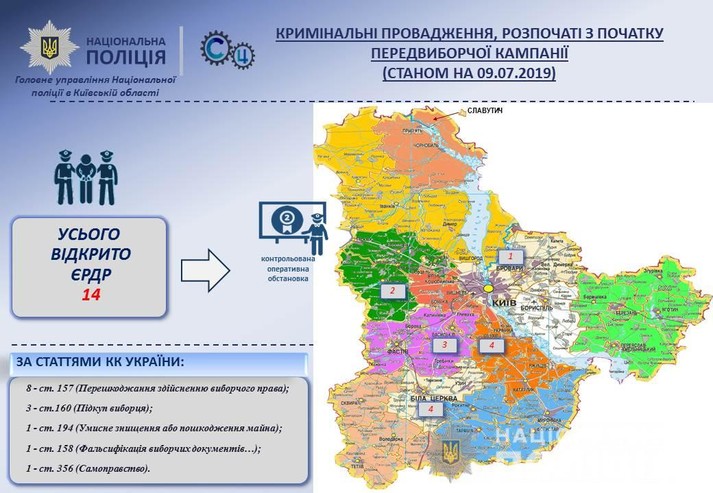 З початку передвиборчої кампанії поліція Київської області відкрила 14 кримінальних проваджень
