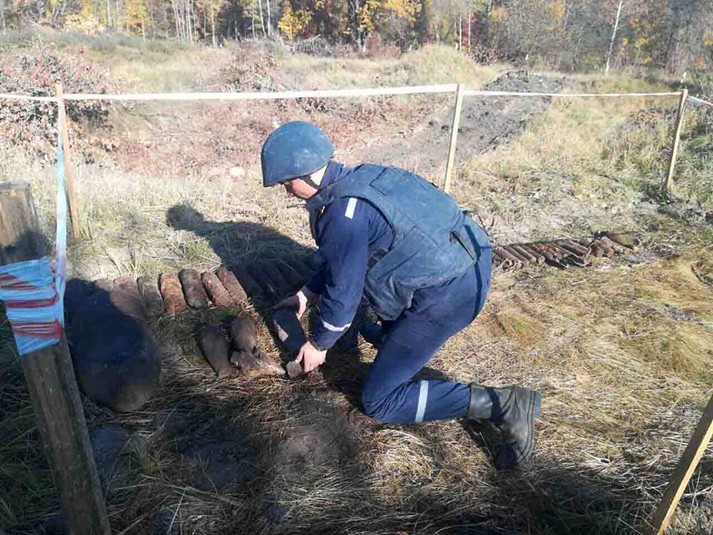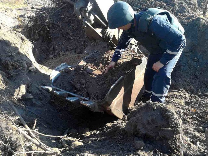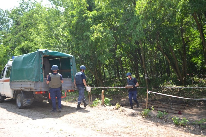 Продовжується робота по розмінуванню урочища «Товсте». Працівники ДСНС вже другий тиждень дістають з землі десятки снарядів, авіабомб та мін часів минулих війн.
