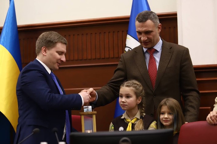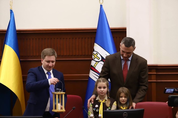 «Традиційно в кінці року нам у сесійній залі Київради передають Вифлеємський вогонь – як символ добра, що завжди перемагає. Як символ, що надає наснаги і сил на добрі справи, які ми робимо на користь нашого міста. Нехай Вифлеємський вогонь надихає всіх нас на мудрі рішення та дарує Різдвяну радість», – сказав Віталій Кличко та подякував пластунам.