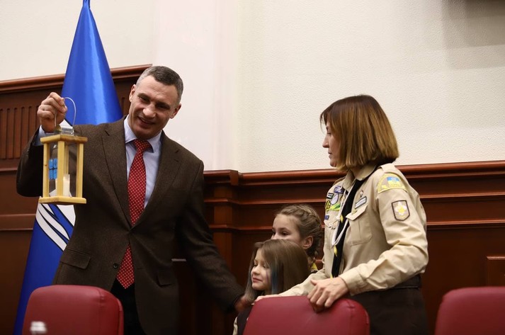 Представники національної скаутської організації «Пласт» принесли до Київради благодатний Вифлеємський вогонь та вручили його меру столиці Віталію Кличку. Про це повідомляє пресслужба Київради