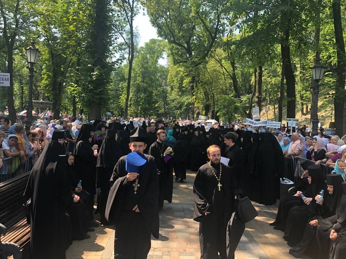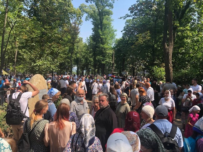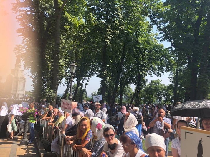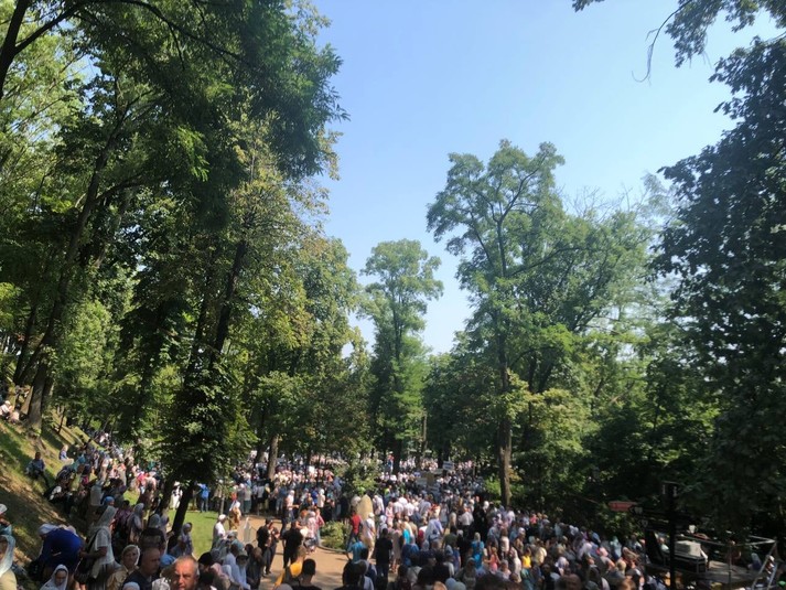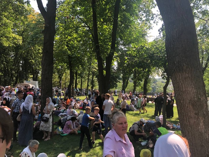 Віряни церкви Московського патріархату зібралися на Володимирській гірці. Вони очікують урочистого молебну, який очолить Блаженніший Митрополит Онуфрій.