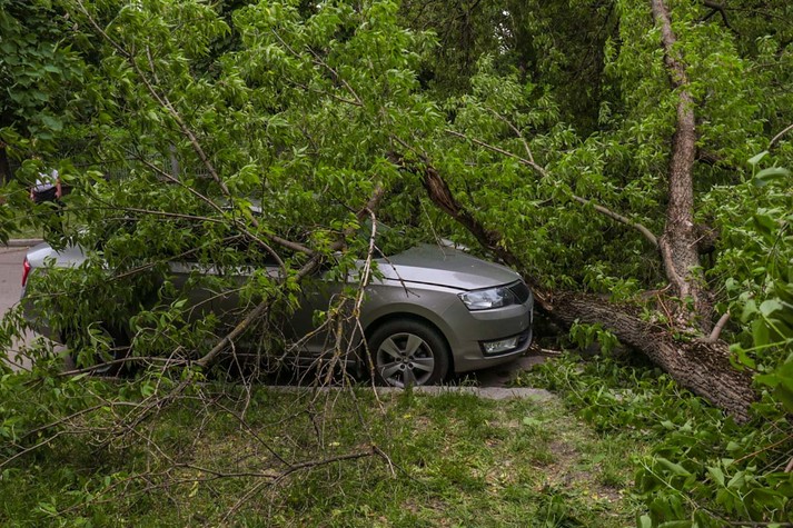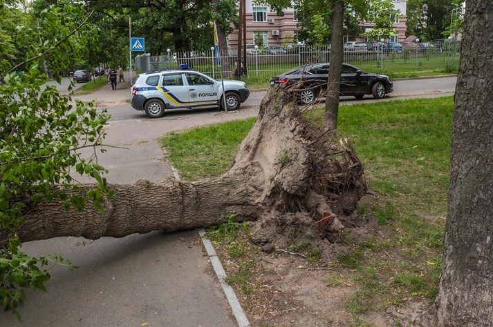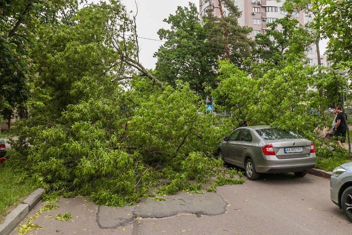 У вівторок, 21 травня, в Києві на перетині вулиць Крамського і Львівської впало дерево і придавило припаркований автомобіль Skoda Rapid. Крім того, ствол і крона дерева впали поперек вулиці Крамського і зупинили рух машин по проїжджій частині в сторону проспекту Перемоги.