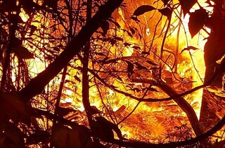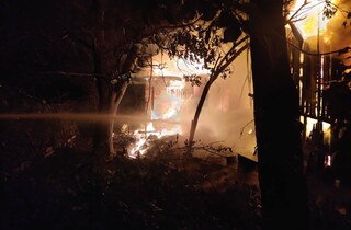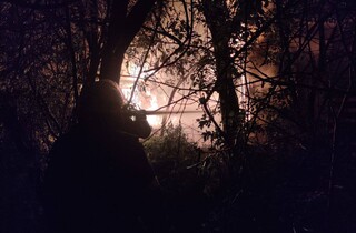 У ніч на 30 травня у Києві під час повітряної тривоги пролунала серія вибухів. У Дарницькому районі столиці внаслідок падіння уламків дрона виникла пожежа. Фото загоряння оприлюднила Київська міська військова адміністрація.