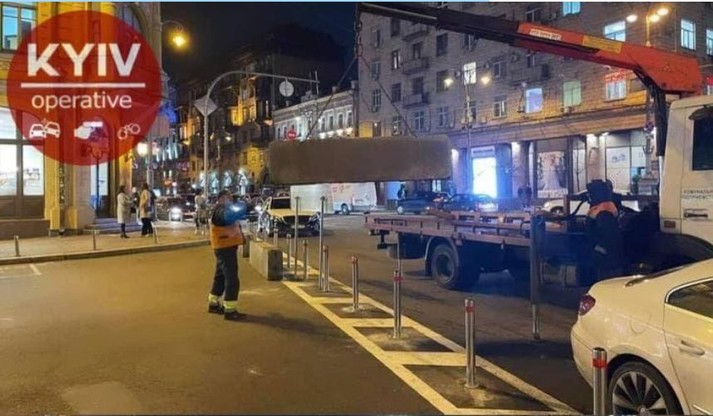 Водії демонтували на Бессарабці антипаркувальні стовпчики