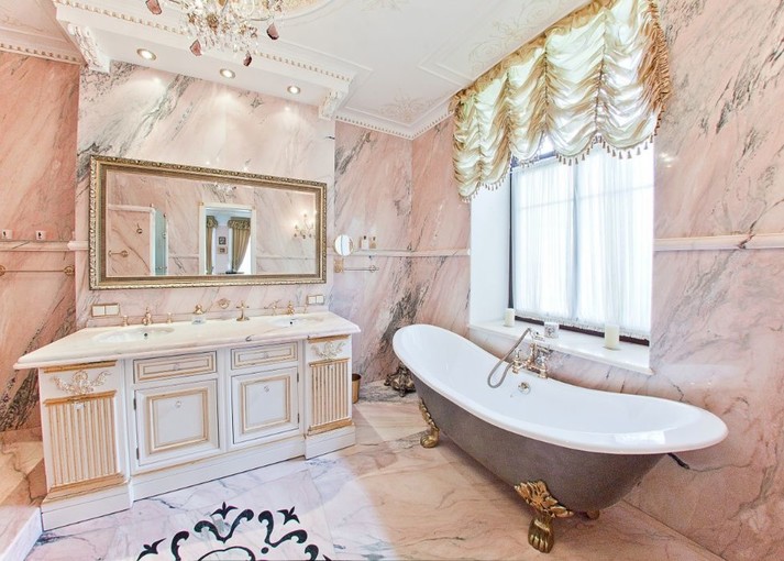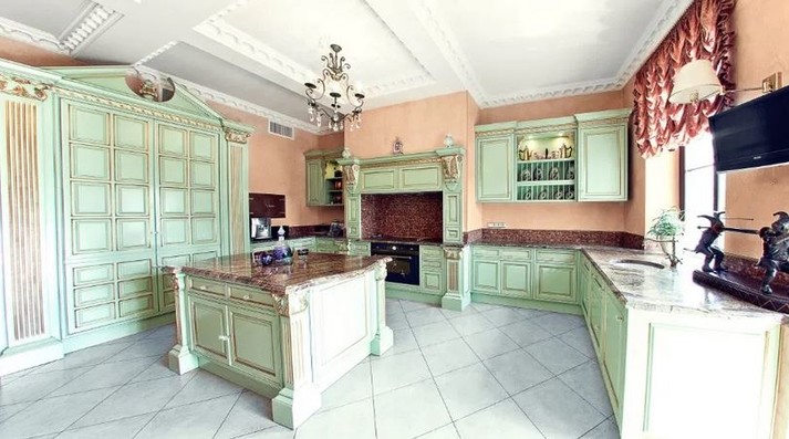 «Квартира оформлена у вікторіанському стилі, за ексклюзивним проєктом з індивідуальним ліфтом в квартиру. Дизайн виконаний з використанням сусального золота, ліпнини, художнього розпису, мармуру і екзотичних порід дерев», – зазначається в оголошені.