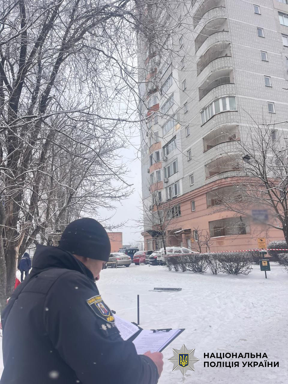 Влучання дрона у 15-поверхівку в Солом’янському районі: поліція показала наслідки