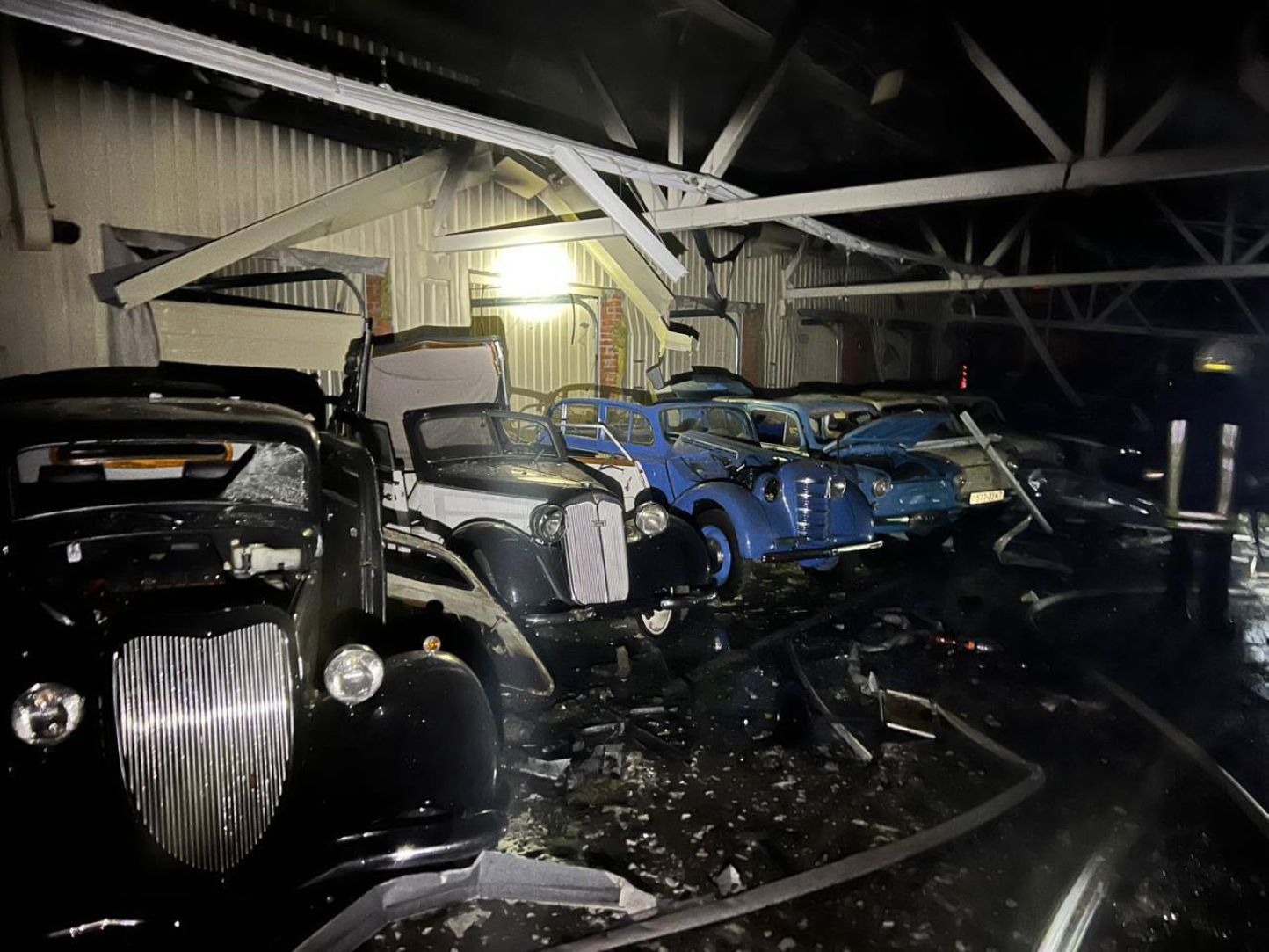 У ніч проти 28 січня на Київщині уламки БпЛА влучили в музей ретро-автомобілів. Судячи з фото, йдеться про музей в Межигір'ї, де зберігається колекція автівок президента-втікача Віктора Януковича.