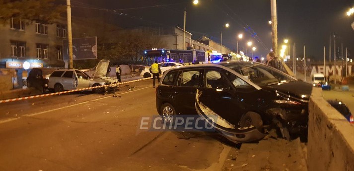 У ніч на неділю на Шулявському шляхопроводі сталася потрійна ДТП, через що рух через нього був перекритий в обох напрямках для всіх видів транспорту.
