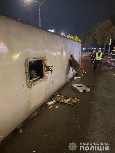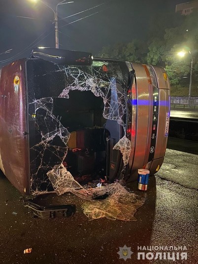 Попередньо правоохоронці встановили, що водій транспортного засобу не впорався з керуванням та наїхав на бордюр, внаслідок чого автобус перекинувся.