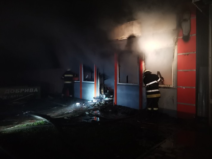 По прибуттю на місце пожежі рятувальники встановили, що вогнем охоплено металевий МАФ – магазин «Агромаг» з середини по всій площі.