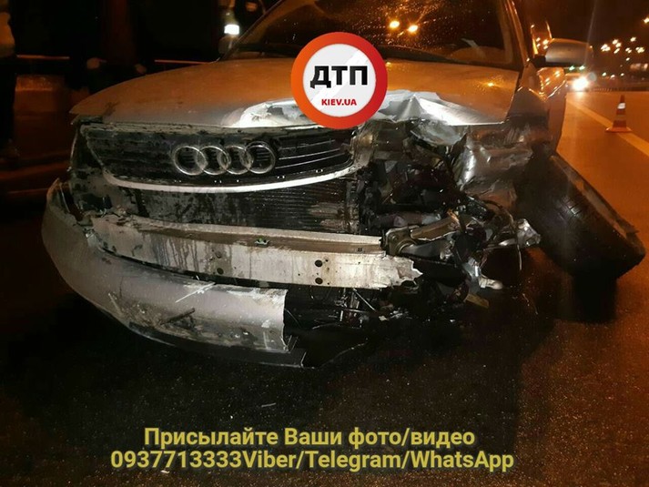 «Зі слів водія автомобіля Renault, він рухався по Чоколівському бульварі та в бічні дзеркала помітив автомобіль Audi, який петляв по дорозі. Уже після перехрестя водій «німця» вирішив випередити «француза». З невідомих причин, Audi «чіпляє» Renault і потім врізається у відбійник. Від удару «німця» починає крутити по дорозі. Дистанція від місця зіткнення до місця повної зупинки Audi - близько 200 м», - йдеться в повідомленні.